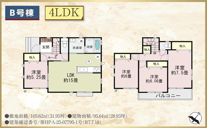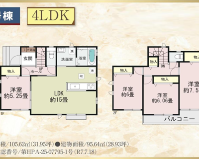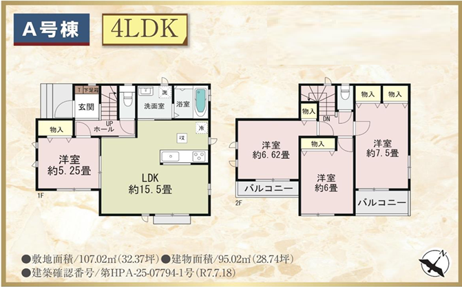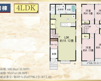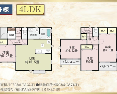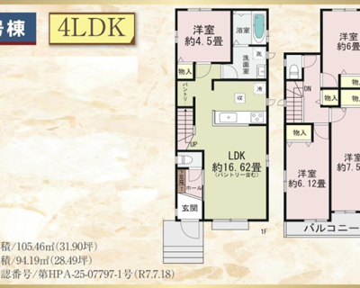 土地面積 | 105.46㎡(31.90坪)~107.02㎡(32.37坪) |