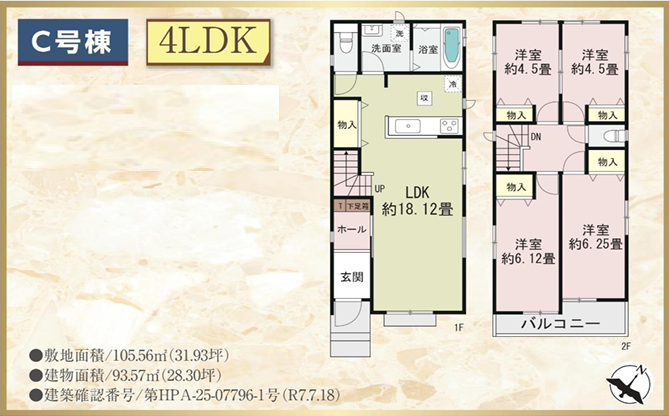 建物面積 | 93.57㎡(28.30坪)~95.64㎡(28.93坪) |