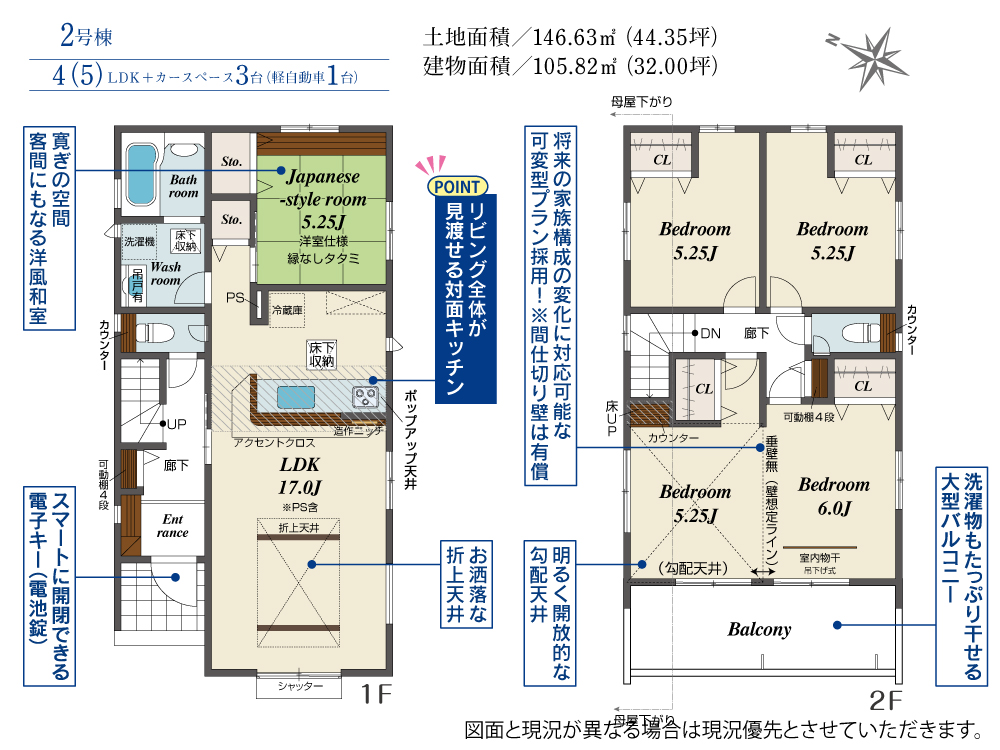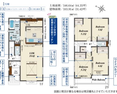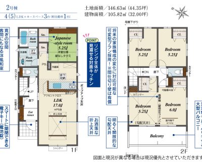 土地面積 | 146.63㎡(44.35坪)~146.64㎡(44.35坪) |