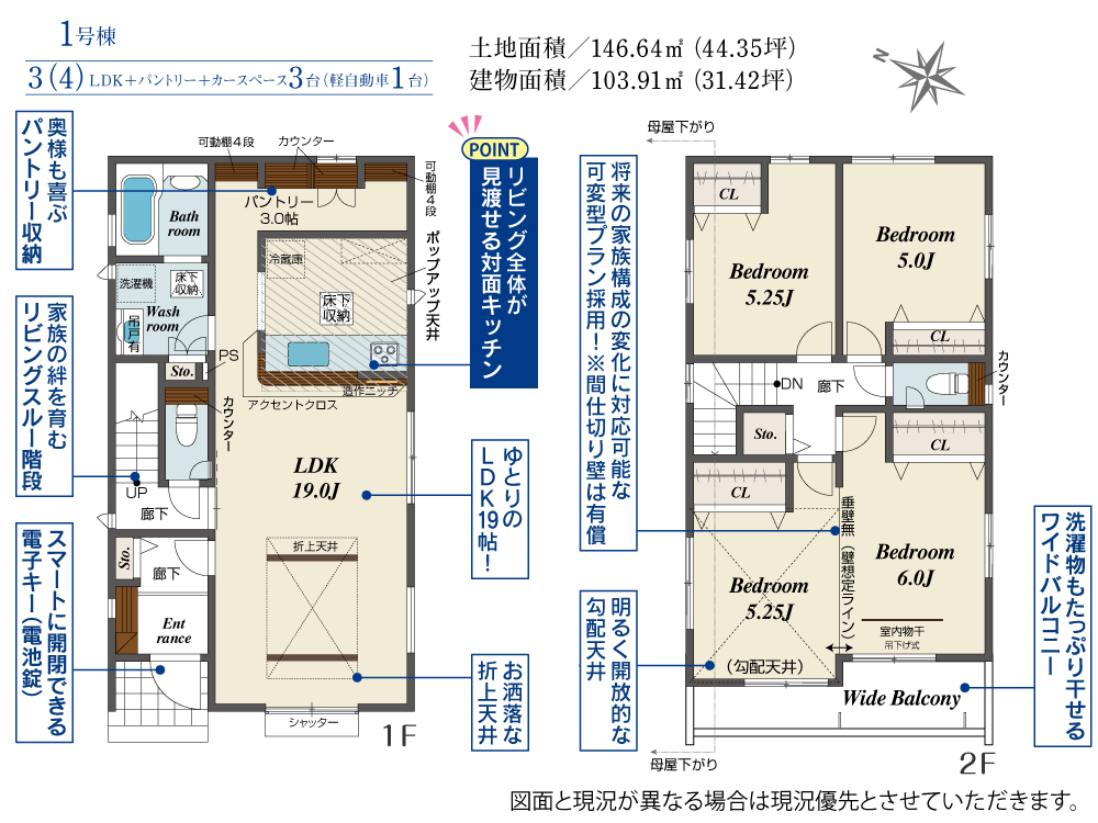 建物面積 | 103.91㎡(31.42坪)~105.82㎡(32.00坪) |