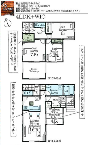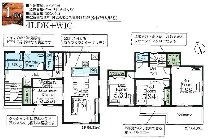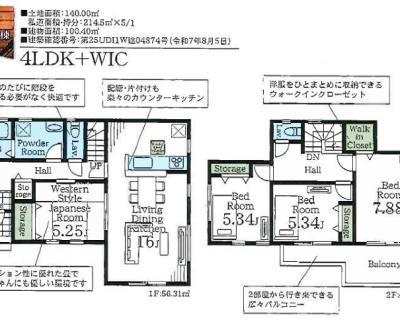 土地面積 140.00㎡(42.35坪)~150.32㎡(45.47坪) 建物面積 100.40㎡(30.37坪)~110.43㎡(33.40坪)