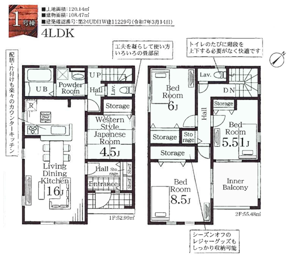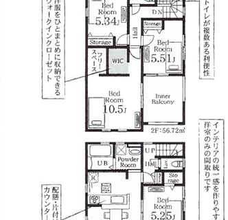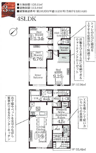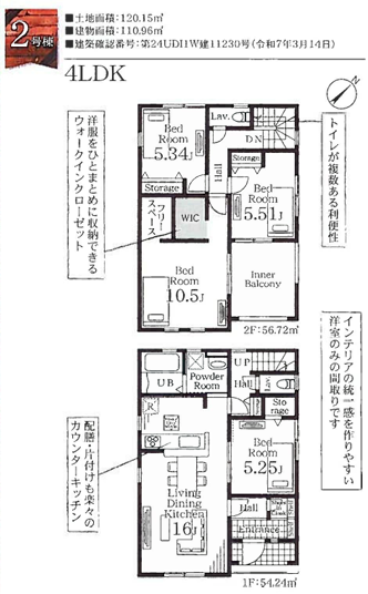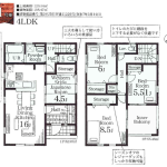 土地面積 120.14㎡(36.34坪)~120.15㎡(36.34坪) 建物面積 108.47㎡(32.81坪)~113.44㎡(34.31坪)