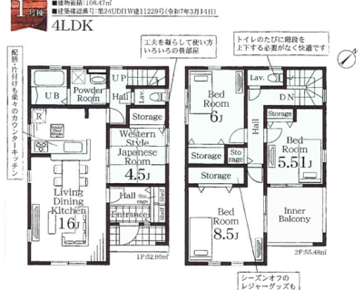 建物面積 108.47㎡(32.81坪)~113.44㎡(34.31坪)