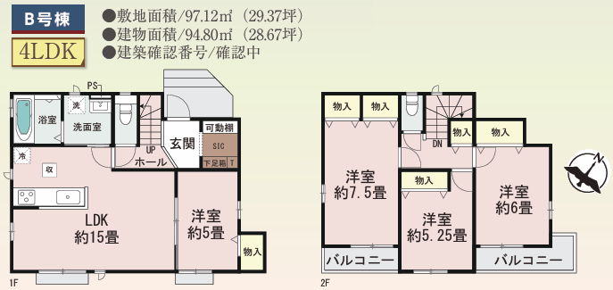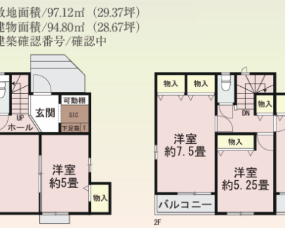 土地面積 97.12㎡(29.37坪) 建物面積 94.80㎡(28.67坪)
