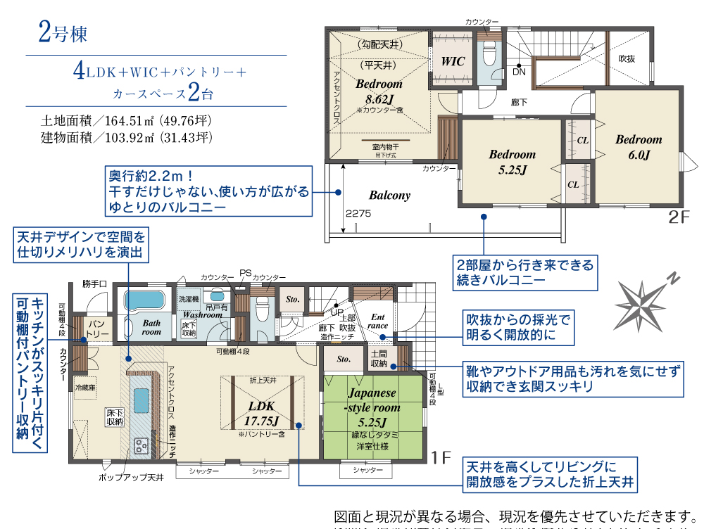 土地面積 164.51m²(49.76坪) 建物面積 103.92㎡(31.43坪)