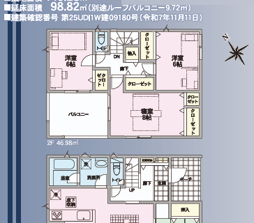 | 建物面積 | 98.81㎡(29.89坪)~98.82㎡(29.89坪) |