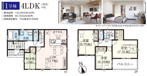 | 建物面積 | 95.74㎡(28.96坪)~96.88㎡(29.30坪) |
